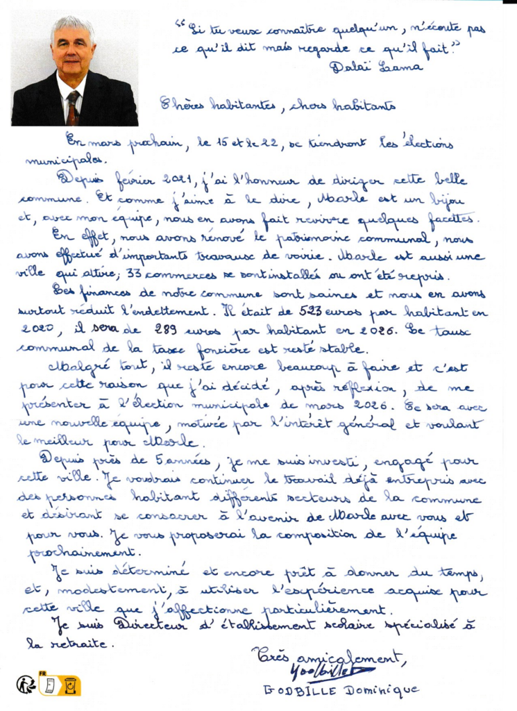 Bienvenue sur le site de la liste du maire sortant Dominique GODBILLE pour les élections municipales 2026: https://marle2026.fr